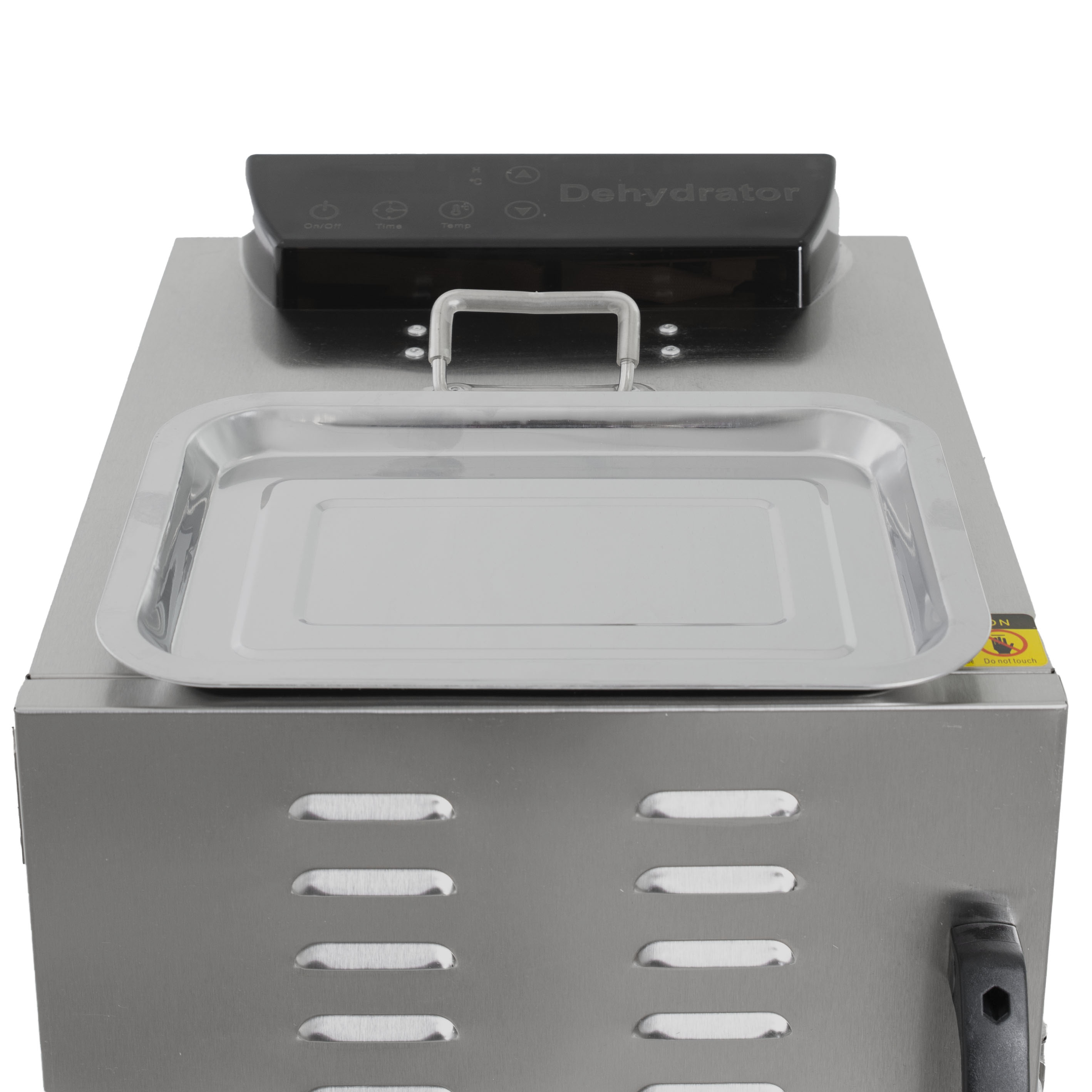 — это профессиональное оборудование горизонтального типа для щадящего обезвоживания пищевых продуктов методом конвекционной сушки, предназначенное для использования в кондитерских цехах, пекарнях, на предприятиях общественного питания и в точках реализации здорового питания. Аппарат оснащён нагревательным элементом (ТЭН) и вентилятором, расположенными на задней стенке камеры, что обеспечивает равномерное распределение горячего воздуха по всем уровням без необходимости перекладывать сырьё. Устройство подходит для сушки овощей, фруктов, зелени, грибов, мяса, рыбы, а также для приготовления йогуртов, сухариков и вяленых деликатесов. Компактные габариты и продуманная конструкция позволяют эффективно использовать рабочее пространство профессиональной кухни.